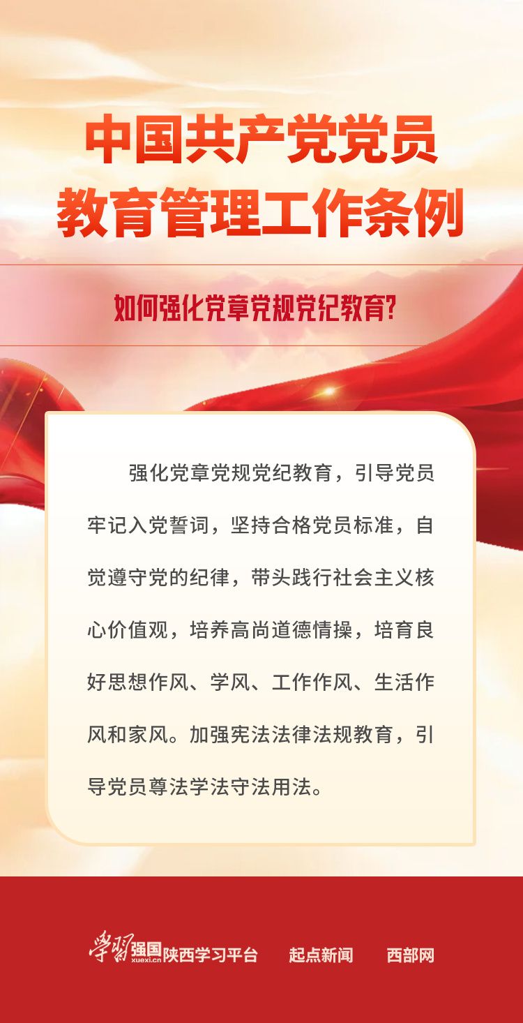【学习卡片】《中国共产党党员教育管理工作条例》:如何强化党章党规党纪教育?