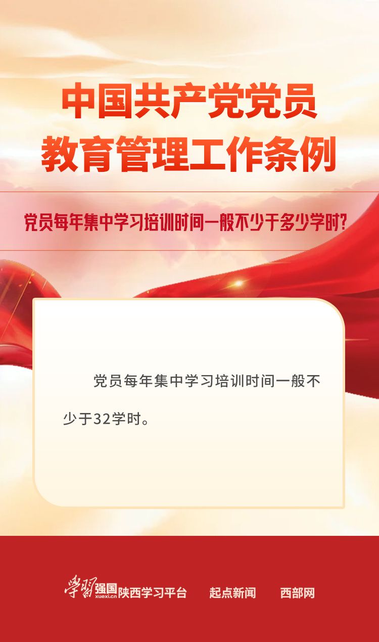 【学习卡片】《中国共产党党员教育管理工作条例》:党员每年集中学习培训时间一般不少于多少学时?