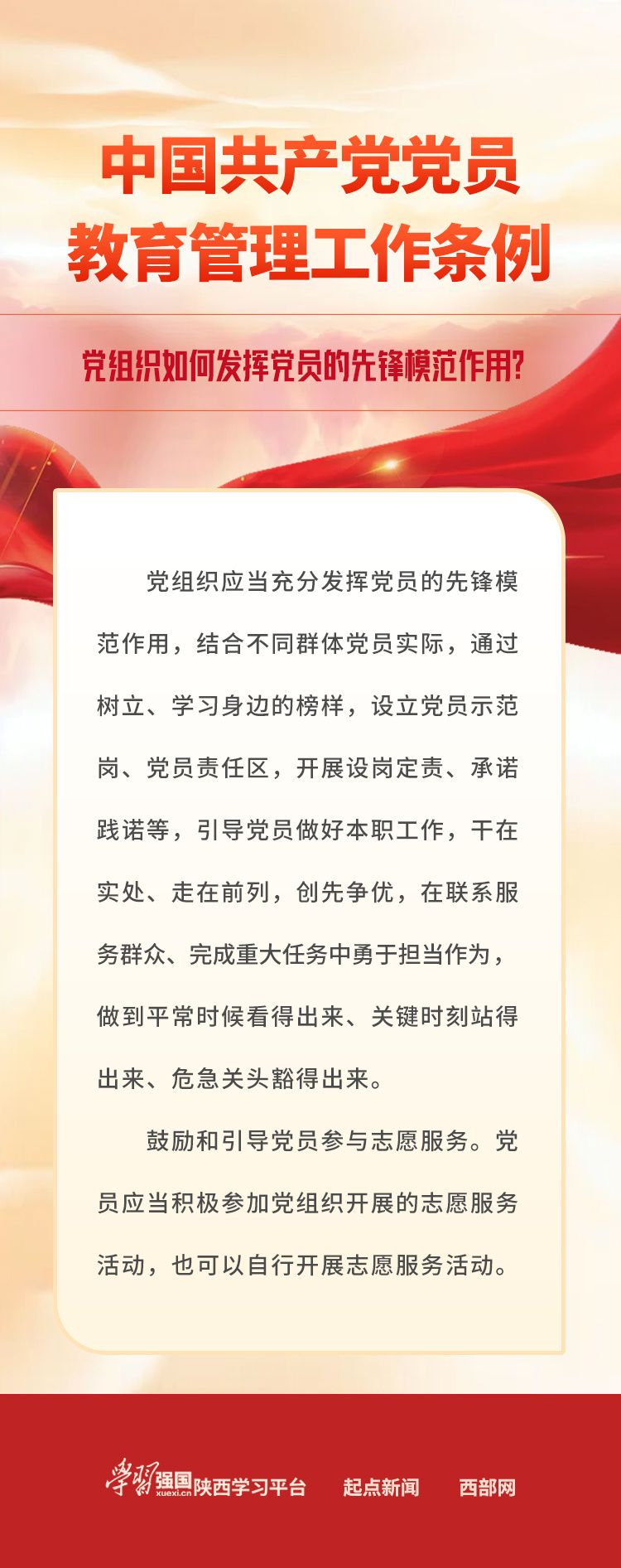 【学习卡片】《中国共产党党员教育管理工作条例》:党组织如何发挥党员的先锋模范作用?