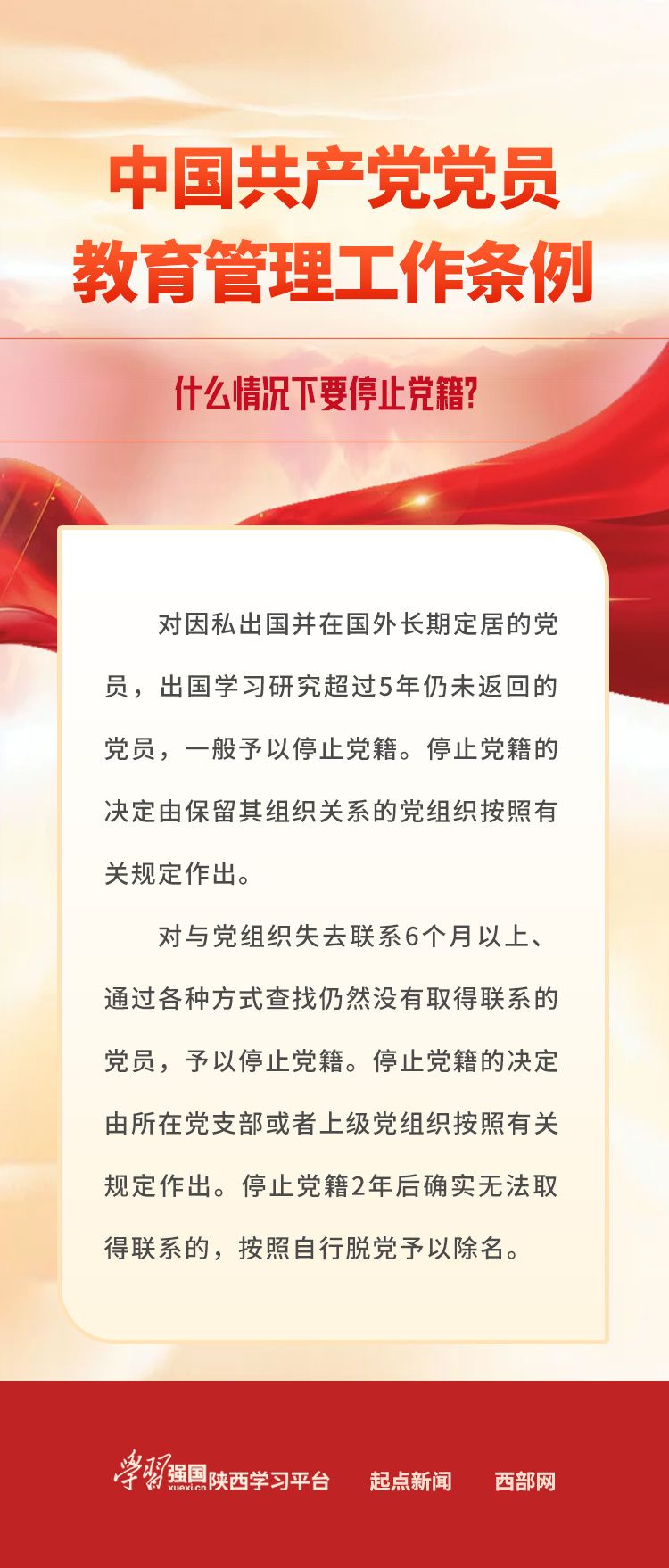 【学习卡片】《中国共产党党员教育管理工作条例》:什么情况下要停止党籍?