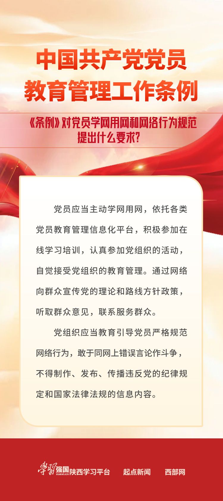 【学习卡片】《中国共产党党员教育管理工作条例》:《条例》对党员学网用网和网络行为规范提出什么要求?