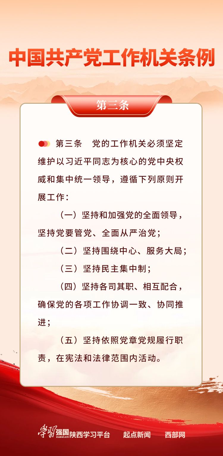 【学习卡片】中国共产党工作机关条例(第三条)
