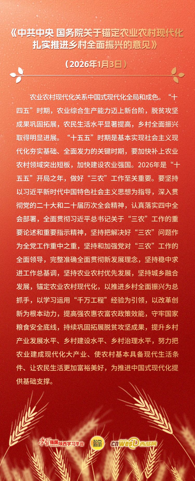 【学习卡片】《中共中央 国务院关于锚定农业农村现代化 扎实推进乡村全面振兴的意见》(1)